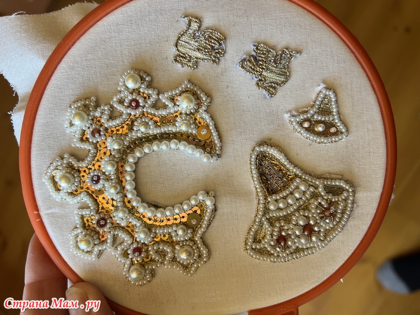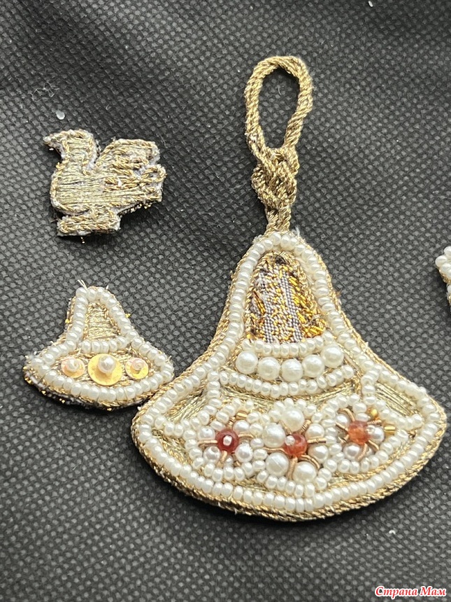 на фото ПТИЧКА, золотая вышивка, и два Накосника, украшение на косу.