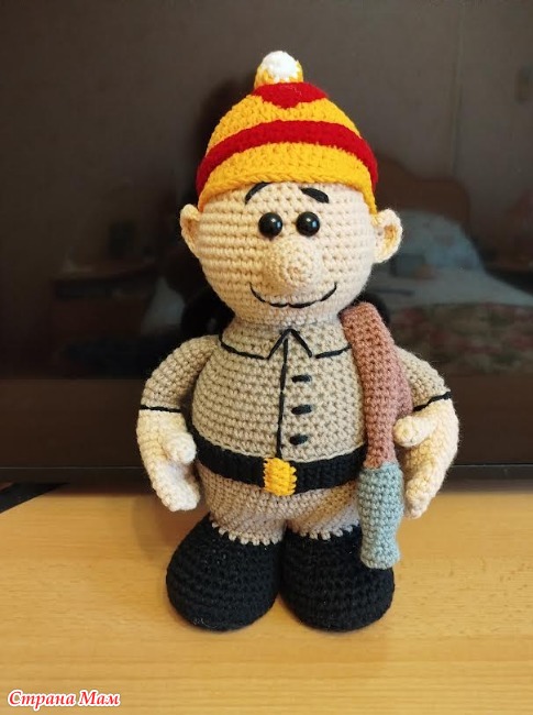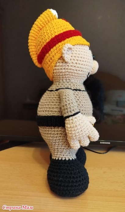Внучка попросила связать в школу пожарника - я связала. МК нашла в инете, в свободном доступе. Нитки - остатки, в основном Пехорка детский каприз. Крючок 3мм.