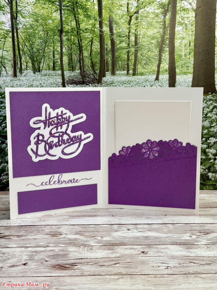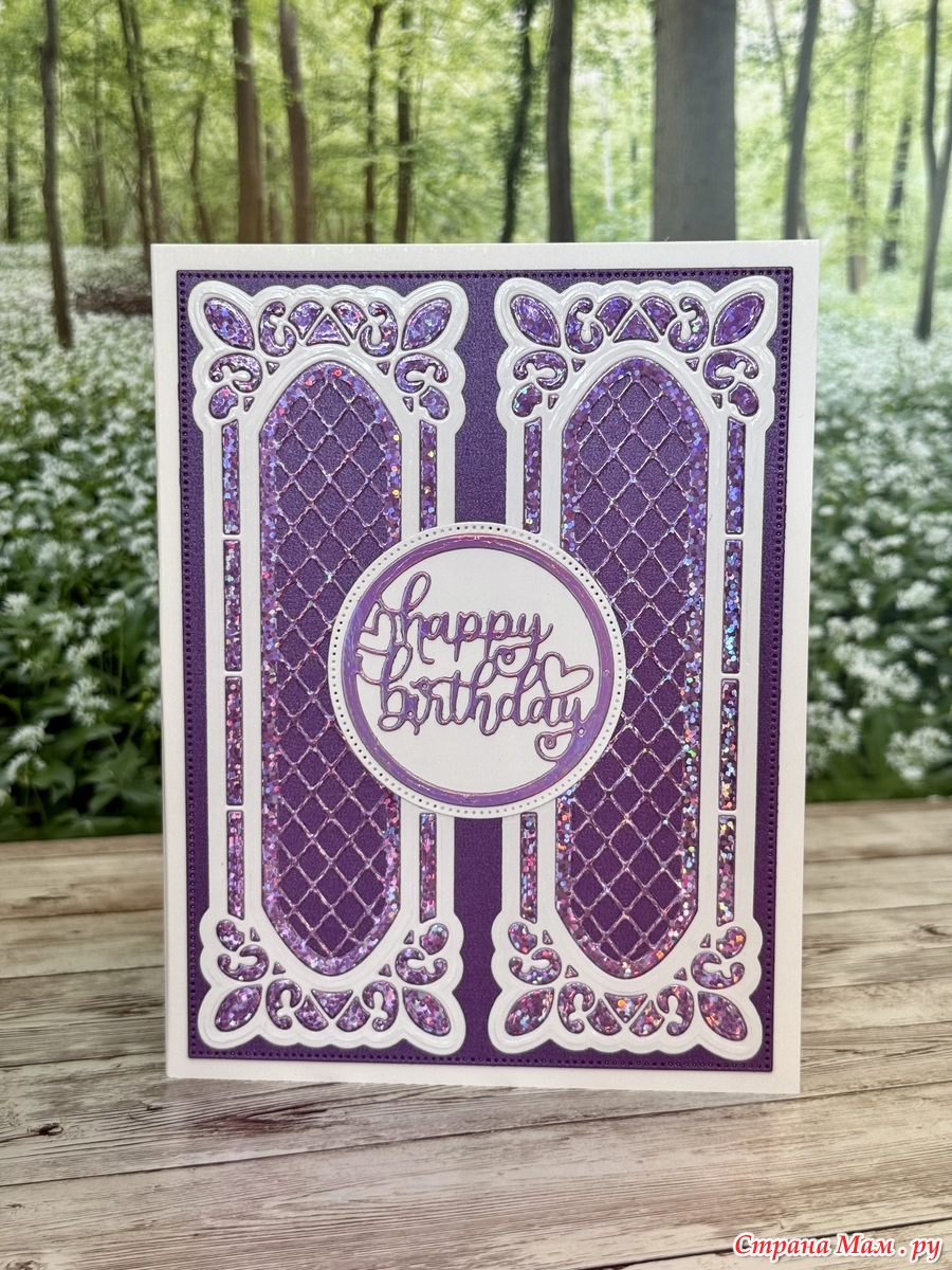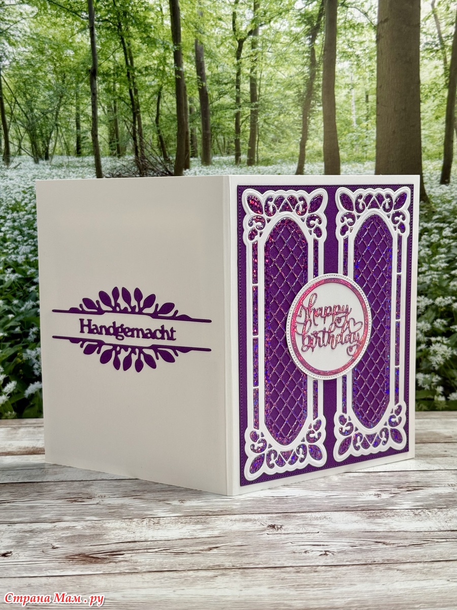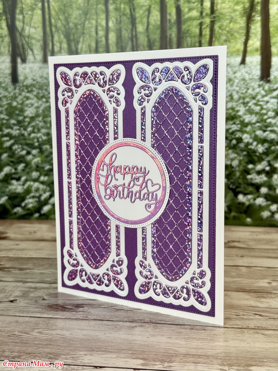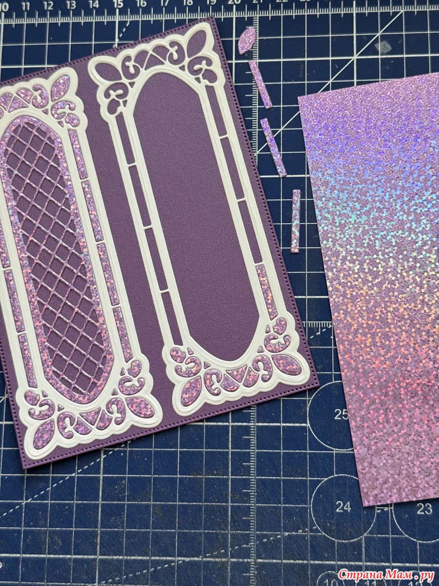 Завтра, если будет время покажу еще такую же открытку, только цвет наоборот. Вместо белой основы открытки будет темно-сиреневый. Тоже интересно смотрится