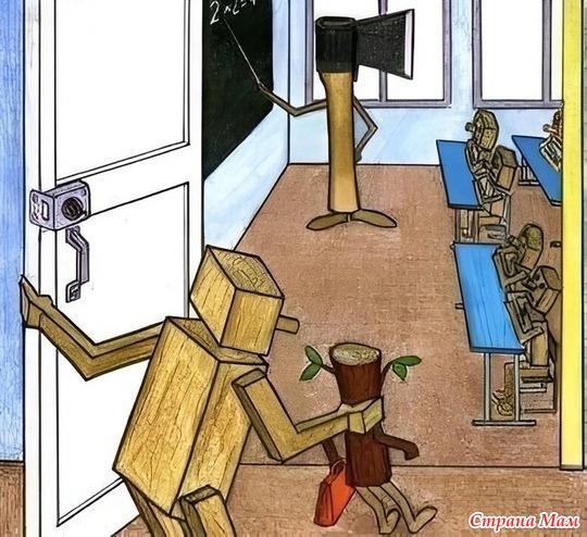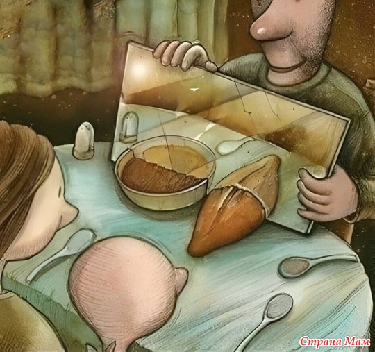 И что он этим хочет "показать"? Я несколько иначе поняла эту картинку: глава семейства преувеличивает свою значимость или не может дать должного и создаёт иллюзию достаточности