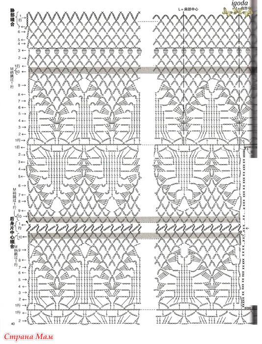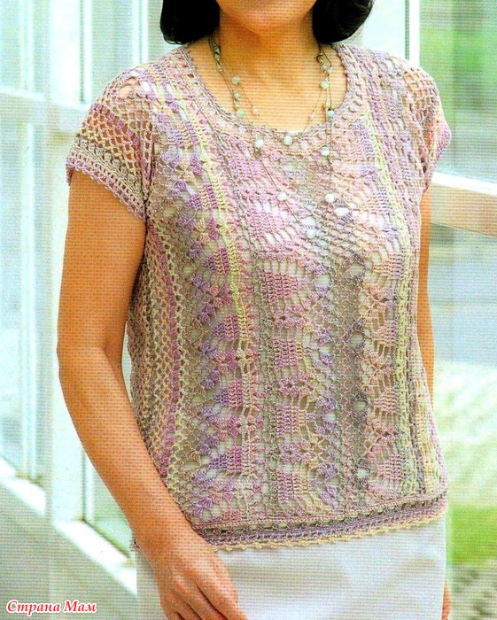 Ажурная кофточка связанная поперек интересными узорами. Крючок.