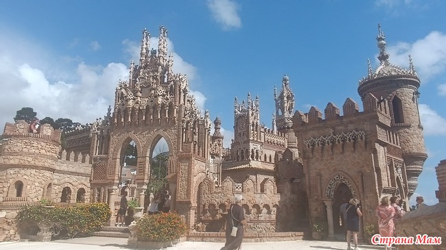 Архитектор - доктор Эстебан Мартин. Следует отметить, что этот фантастический замок сочетает в себе элементы неовизантийского, неороманского, неоготического и неомудехарского стилей. Замок внесен в Книгу рекордов Гиннесса как самый большой памятник Колумбу и как самое маленькое здание церкви в мире. Церковь настолько маленькая, что я ее то ли не нашла, то ли не заметила