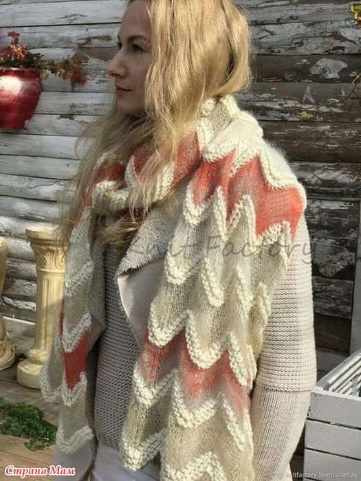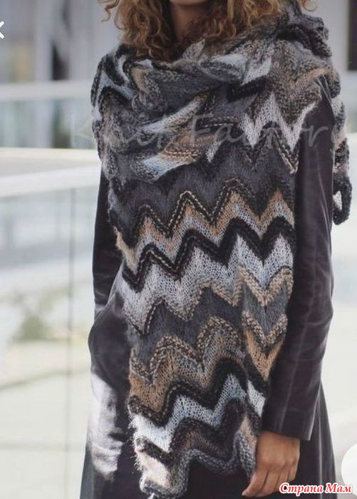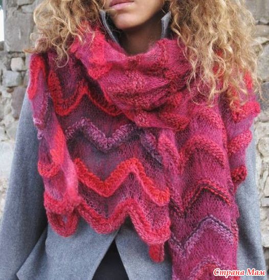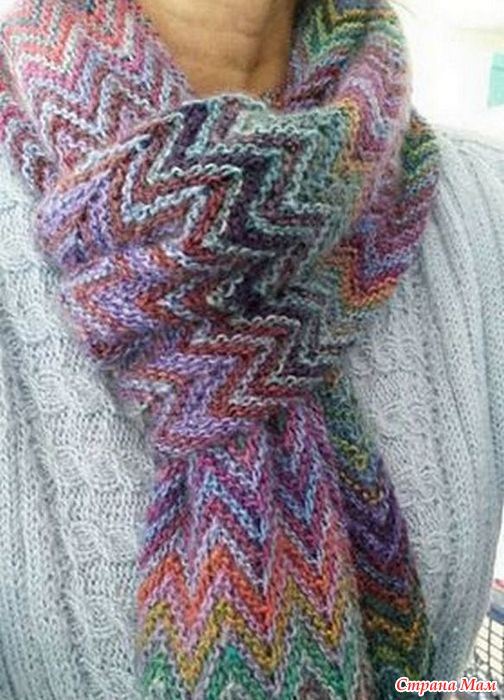 Предлагаю вниманию рукодельниц небольшую подборку шарфов и палантинов, которые можно связать из остатков пряжи, из пряжи разной толщины или пряжи секционного крашения.