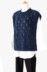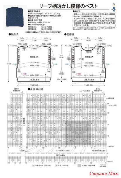 Ажурная безрукавка с большими проймами и лиственным узором. Спицы.