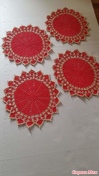 сервировочные салфетки вязала по мастер классу ,но в связи с закрытием доступа к ютубу схемы нет. но видела похожую встречается довольно часто
