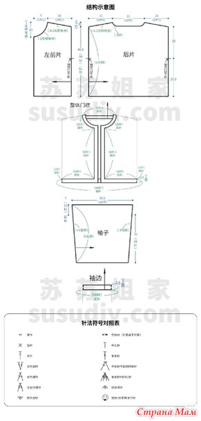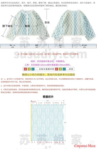 Примечание: 1. Поскольку плотность вязания у всех разная, размер готового изделия также будет разным. Прежде чем приступить к вязанию, можно сначала связать изделие нужной плотности, используя исходную пряжу, измерить плотность вязания, и, достигнув нужного размера, можно приступать к вязанию.