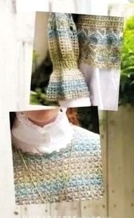 Джемпер из секционной пряжи с узорными полосками и воланами на рукавах. Крючок.