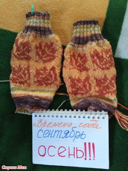 Честно скажу, дались мне они нелегко. Вязала долго, медленно… Жаккард - не мой конек. Боялась стянуть полотно. Но раз заявка сделана, надо вязать…