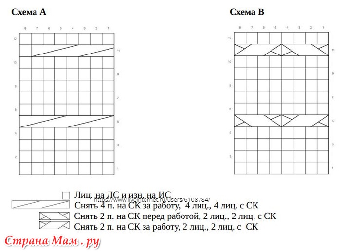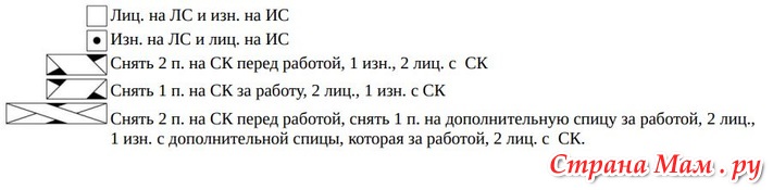 Изн. п. перед и между схемами с изн. стороны всегда вязать лицевыми.