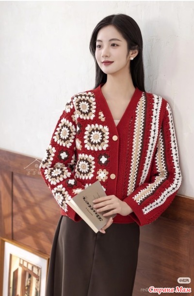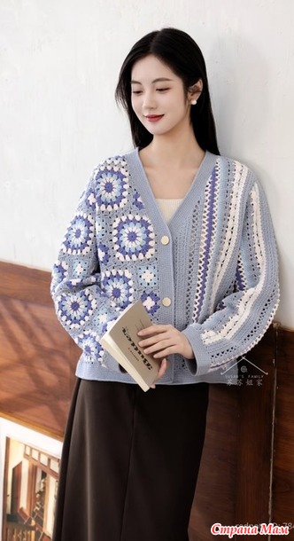Асимметричный кардиган выполненный в разных техниках. Крючок.