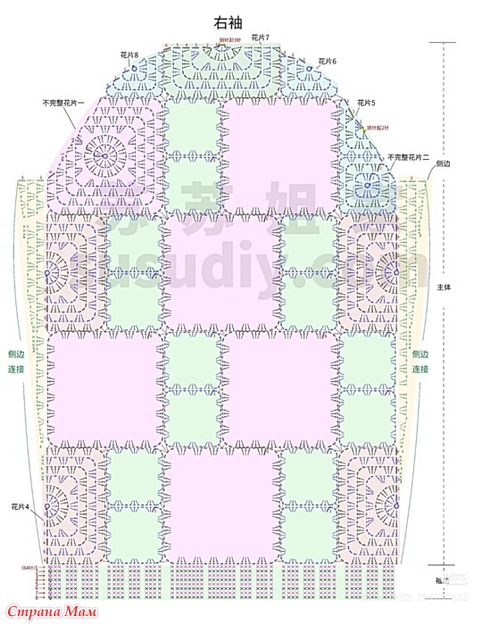 Асимметричный кардиган выполненный в разных техниках. Крючок.