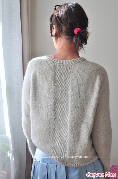 Далее, вы будете прибавлять петли со стороны Переда и Спинки - в каждом 2-м кр.ряду, и одновременно, прибавлять петли со стороны Рукавов - в каждом 4кр.ряду.