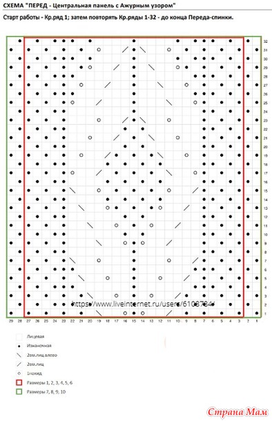 Старт узора - с Кр.ряда 1; затем повторять Кр.ряды 1-32 - до конца Переда-спинки.