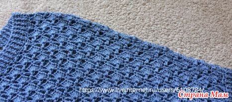Перейти на крючок №1.75, вязать основным узором (схема 1) поворотными рядами до высоты 30 (31, 32) см [или 13.5(14, 14.5) раппортов].