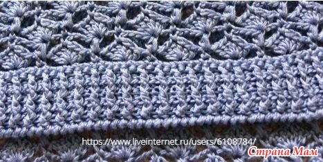 Резинка (см. схема 5): имитация резинки происходит за счет чередования выпуклых и вогнутых столбиков с накидом.