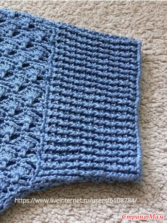 Вяжется снизу вверх, на 4.5 см (2 раппорта) короче спинки.