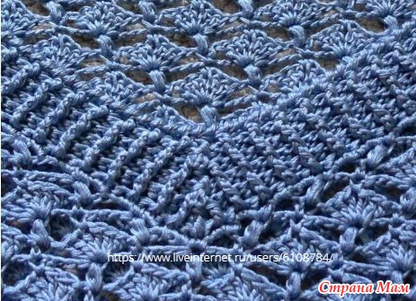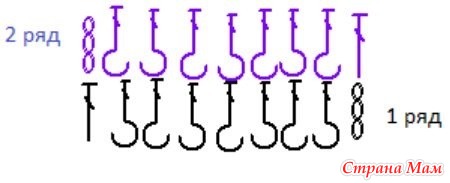 Далее 2-6 ряд вязать по схеме 4 поворотными рядами (3 в.п. * 1 ст. с/н выпуклый, 1 ст. с/н вогнутый* до конца).