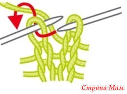 1 ряд - 1 лиц.п., 1 изн.п. снять с накидом ,p>2 ряд - 1 лиц.п. (петлю с накидом предыдущего ряда провязать лицевой), 1 изн.п. снять с накидом.