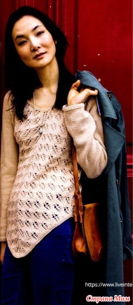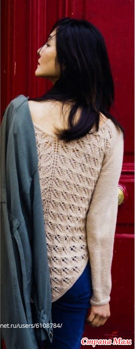 Ажурный пуловер с подолом в форме клина. Спицы.