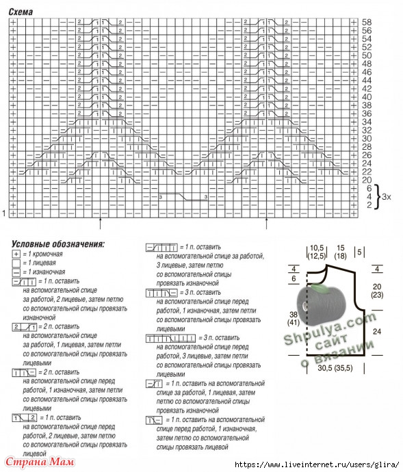Плотность вязания: узор 4 — 20 п. х 30 р. = 10 х 10 см.