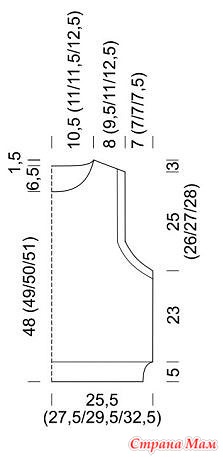 6. На высоте 25 (26/27/28) см от начала пройм для скосов плеч закройте с обеих сторон: