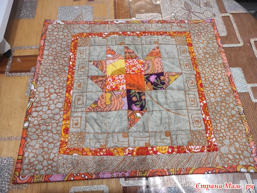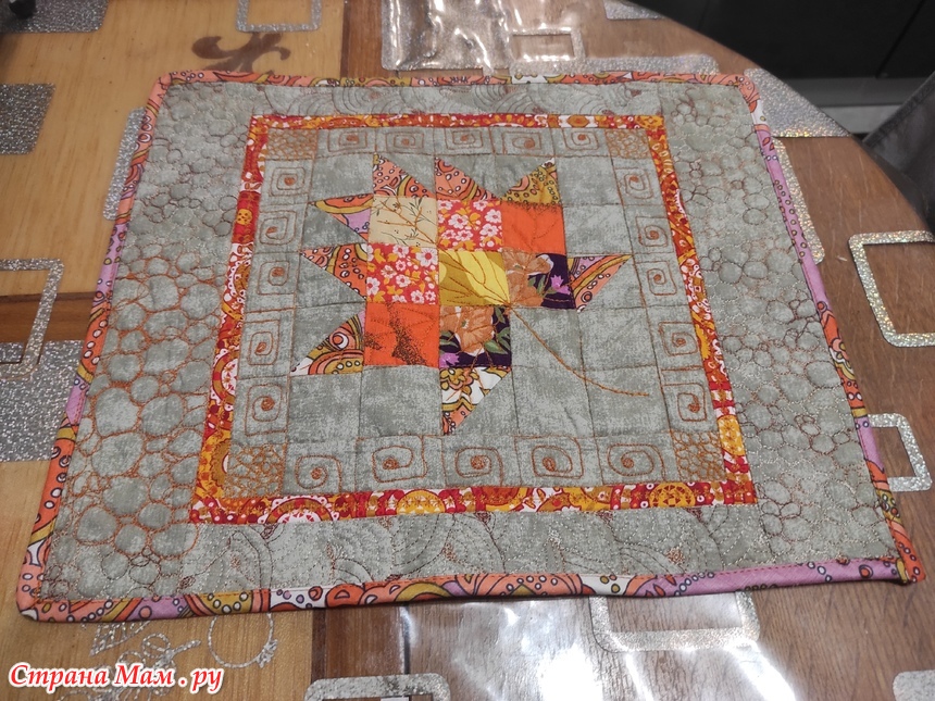 Осталась стежка. Эти подставочки служат мне полигоном для обучения стежке. Долго сражалась с обычными нитками, даже одну подставочку выстегала, но даже не буду показывать изнанку, и сколько раз у меня рвалась нитка. В итоге перешла на вышивальный полиэстр меланжевый.