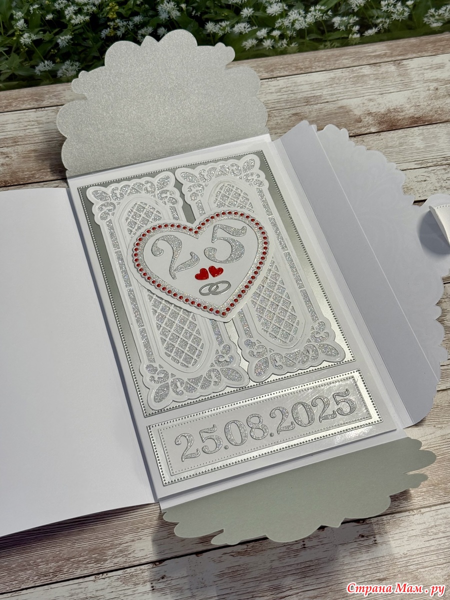 Сегодня у меня открытка с днём серебряной свадьбы. Размер 13 x 20 см.