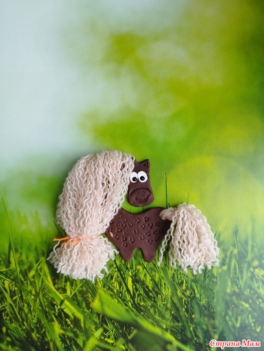 №7 Галина - uchitelka72. Яркая и позитивная лошадка, символ 2026 года. Подвеска из самоотвердевающей массы.