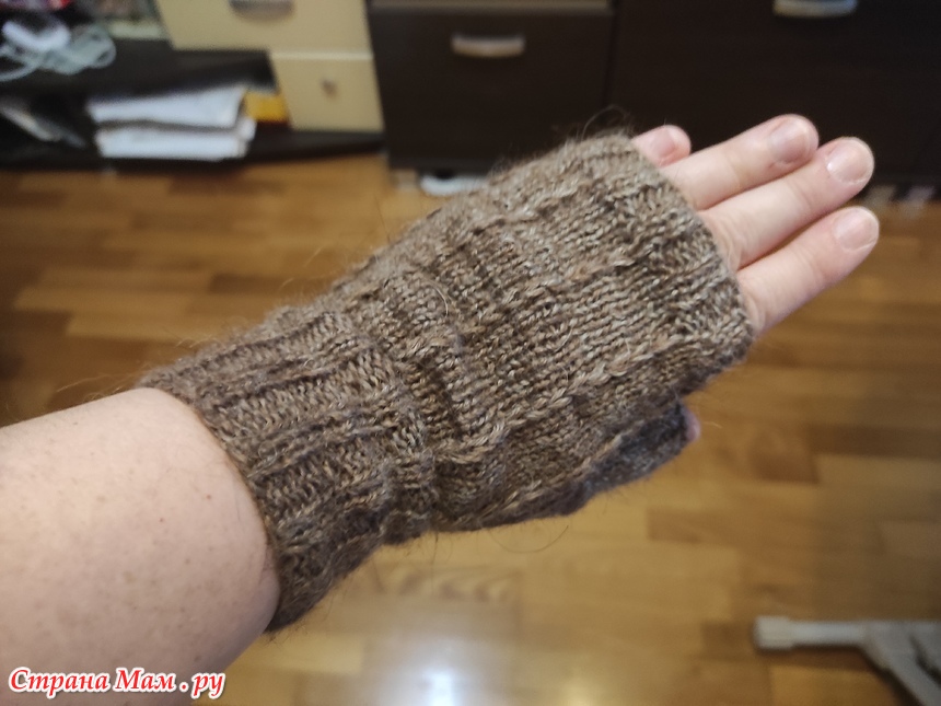 Потому из остатков связала митенки спицами 2,25 уже в две нити. Вот такой комплект получился. Уже активно (2 дня) носится. Тепло и уютно. Уже никому не отдам.