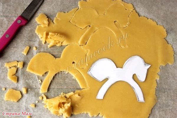 1. Простой способ - вЫрезать шаблон из плотной бумаги и на раскатанном тесте вырезАть фигурки лошадок.