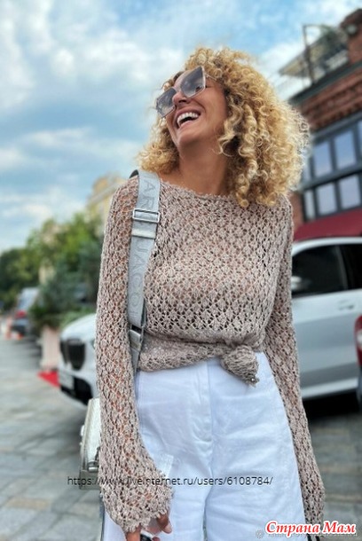 Внимание! Если вы захотите удлинить или укоротить джемпер, то вместо 112 рядов до реглана, выполняете желаемое. Например, на розовом джемпере из кашемира связано 96 рядов ажурного до начала скосов реглана. Длина моего розового джемпера 58см.