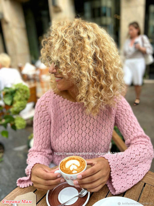 Внимание! Если вы захотите удлинить или укоротить рукав, то вместо 128 рядов до реглана, выполняете желаемое. Например, на розовом джемпере из кашемира связано 112 рядов ажурного до начала скосов реглана.