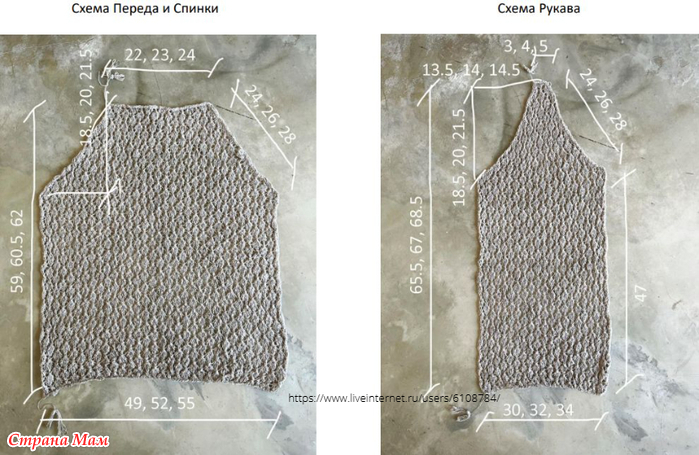 Внимание! Если вы захотите удлинить или укоротить джемпер, то вместо 112 рядов до реглана, выполняете желаемое. Например, на розовом джемпере из кашемира связано 96 рядов ажурного до начала скосов реглана. Длина моего розового джемпера 58см.