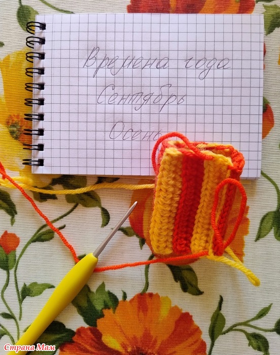 Но когда я начала вязать тыковку, то поняла, что выбранная пряжа плохо сочетается, поэтому пришлось ее заменить.