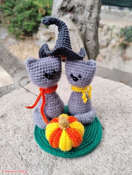 Но котики должны были соответствовать сезону, поэтому в компанию им было решено связать тыкву