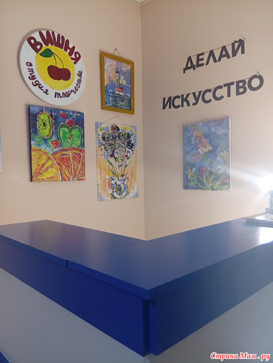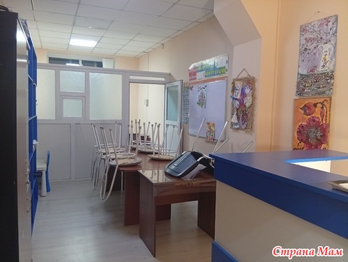 Это зона ресепшена . Логотип на круглом холсте нарисовал мой сын .