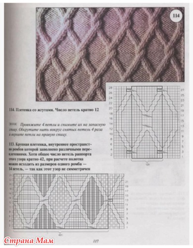 Здравствуйте! Девочки, помогите, пожалуйста, найти схему таких 4х ромбов и их переплетение. Косы и узор шахматка не интересует. Из двух ромбов много схем, но мне надо 4 ромба и именно такое переплетение. Сама составлять схемы не умею(( Буду очень благодарна