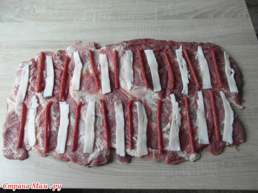НШ Как заготовить мясо? Рулет с тонкими салями.