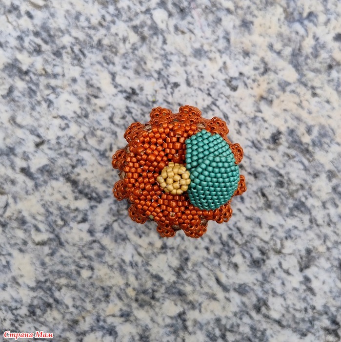 Когда бисер, наконец, доставили, я доплела крышку и поняла, что она не входит в тыковку