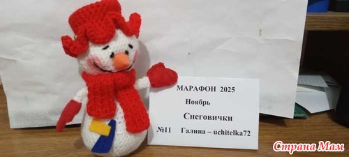 У меня готов и третий Снеговик, крючком. Всё-таки связала. Сегодня оформлю окончательно, сделаю отчёт по всем троим.