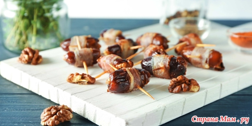 Закуска с финиками, беконом и грецкими орехами.