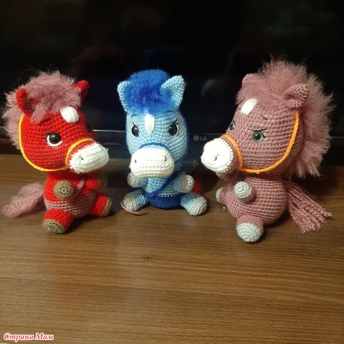 Рост скакунов 14 см (у автора 10 см, т.к. связаны из хлопка)