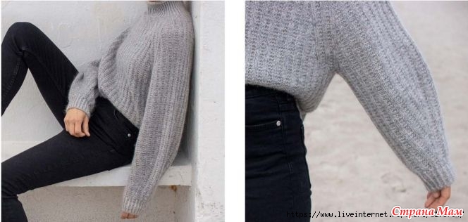 Ribbed Jumper – это мягкий и пушистый пуловер с элегантными линиями регланов на кокетке, деталями скрещенной резинкой, мягко закручивающимся краем горловины и изящными убавками с внешней стороны рукавов. Пуловер вяжется сверху вниз. Сначала вяжется воротник, затем выполняются укороченные ряды для формирования более высокой линии горловины спинки, затем кокетка, тело и рукава вяжутся круговыми рядами.