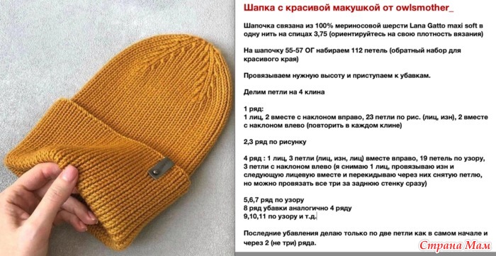 У всех подобных шапок 4 клинок в разных вариациях убавки как правило по 8 в каждом втором. Если между убавками по 5-6 рядов, это вытянутая длинная макушка получится.