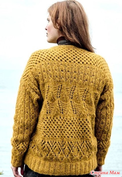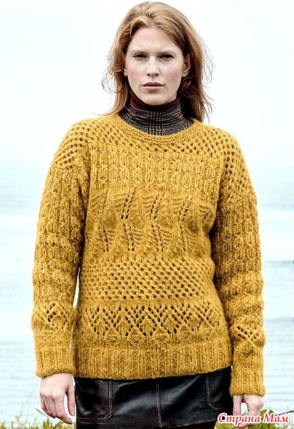 Джемпер с миксом ажурных узоров. Спицы.