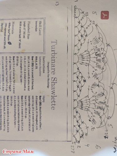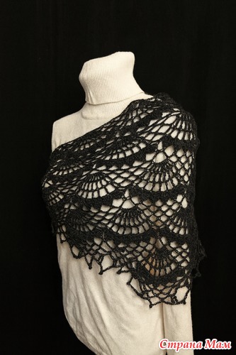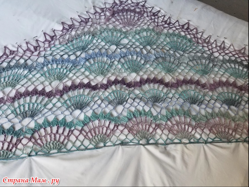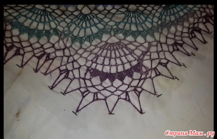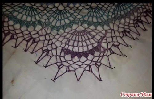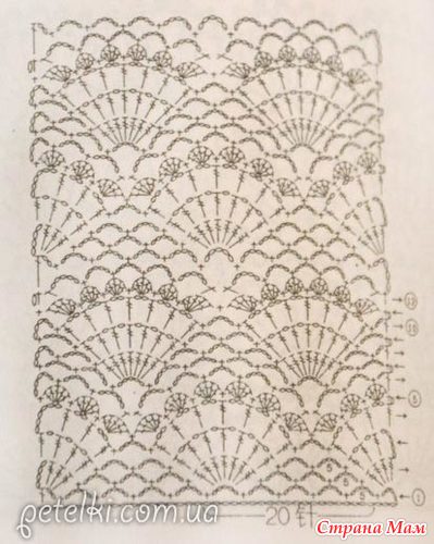 Сравниваю схему с фото, что наскринила с проектов рукодельниц по МК автора шали (выложила их в комментах ниже), да, очень похожа схема, только у автора ещё ряд со столбиками добавлен и между раппортами по четыре арочки, а не по три, как в схеме.