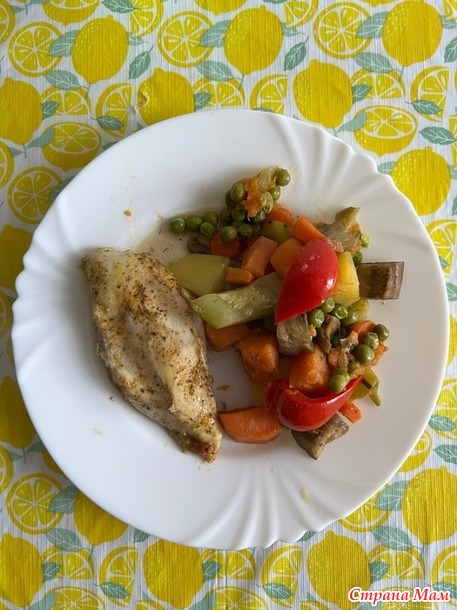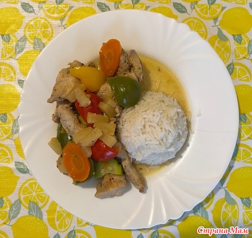 Сегодня куриные грудки в кисло-сладком соусе с овощами(соус не доделан, оказалось, что в доме нет крахмала