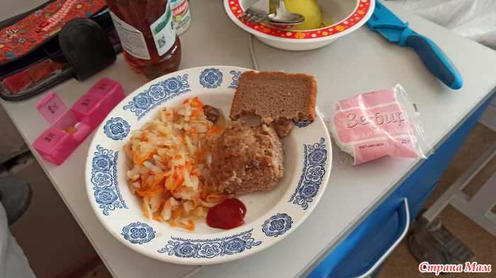 Супчики были простые (на фото рыбный), макароны с котлетой, пюре, рис, гречка. Кефир и сок в упаковках, вафли или простые печеньки в упаковках, яблоки простые или запеченые. Каши типа перловки, "дружба", овсянка.