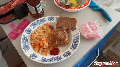 Кстати, когда я уже уходила с баулами на выписку, обнаружила, что всего этажом ниже был вполне приличный кафетерий для работников. И мужское население нашего отделения там паслось.У мужиков, видимо, нюх лучше и голод - не тетка!