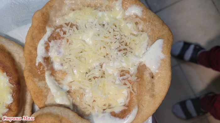 Прямщас : это лангош. Короче дрожжевые лепешки жареные во фритюре, помазанные сметаной с чесноком и посыпанные моцареллой тертой